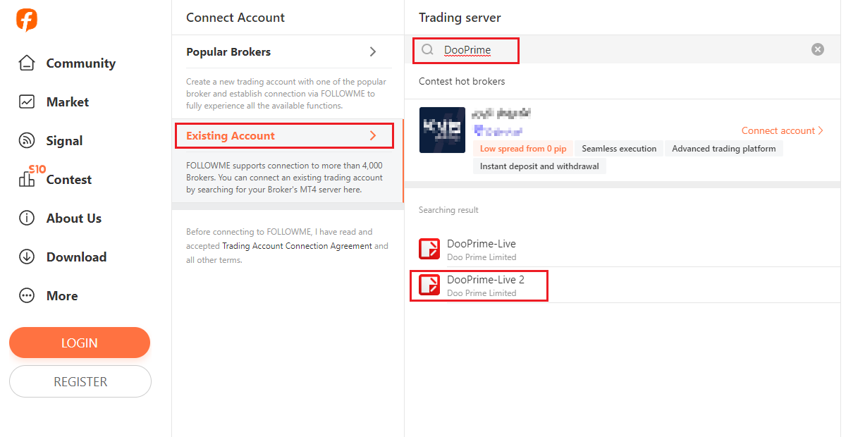 كيفية ربط حساب التداول D Prime عبر FOLLOWME؟
