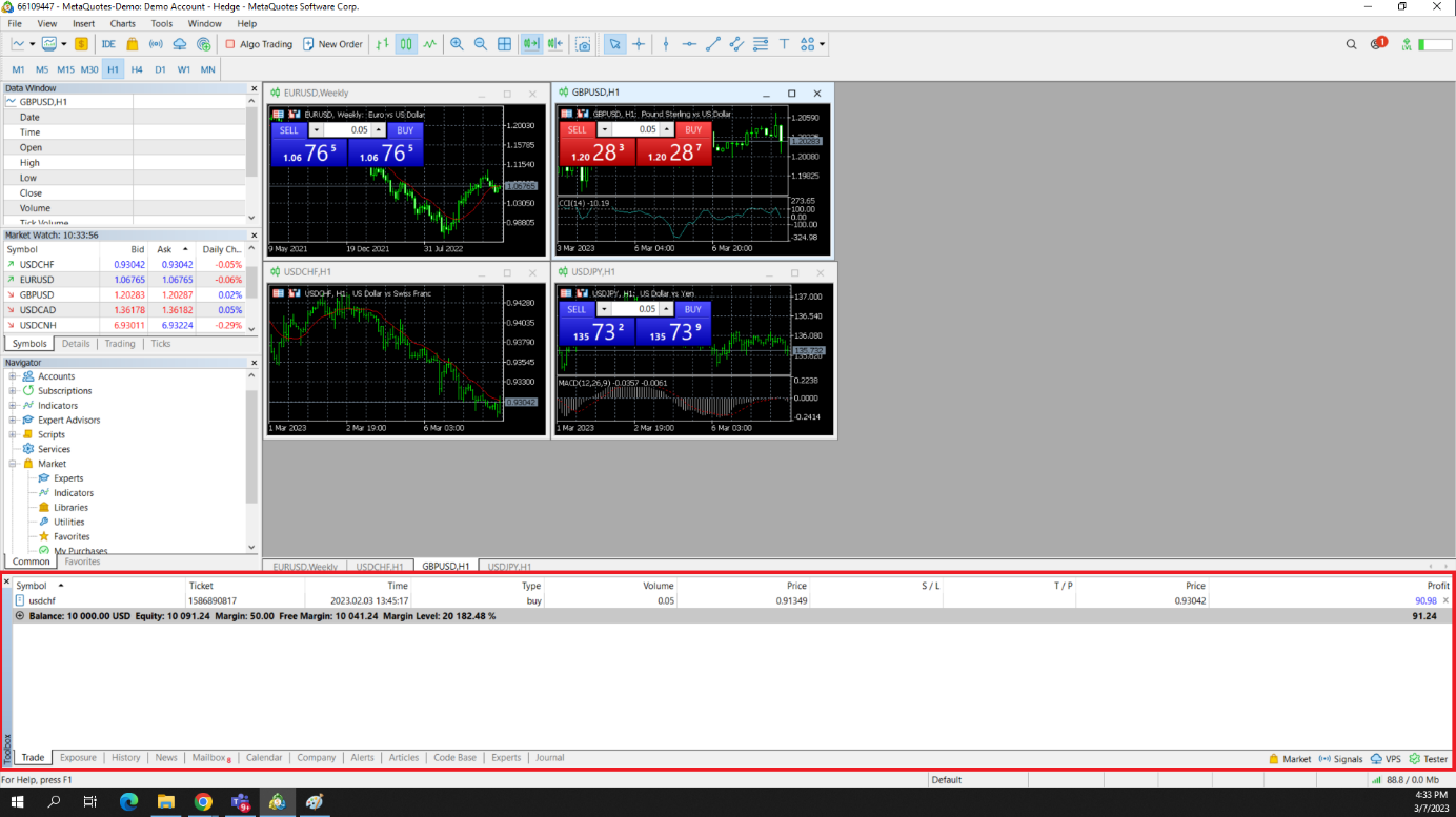 يمكن للمستخدمين التبديل بين حسابات التداول المختلفة ضمن [الحساب] في [التنقل] ، وتعيين المؤشرات ومعاملات EA.