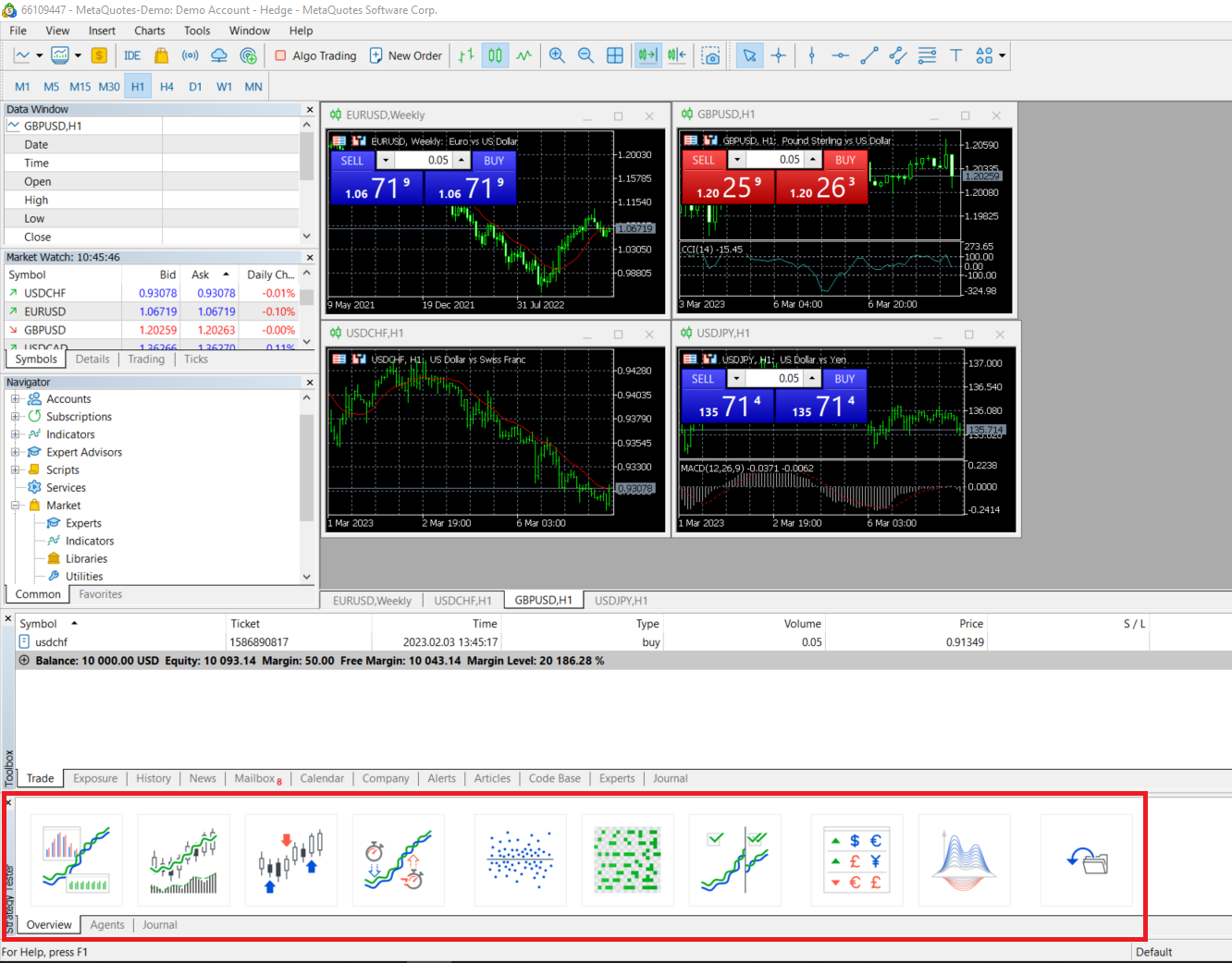 يغطي صندوق الأدوات وظائف متعددة ، بما في ذلك [التداول] ، [التعرض] ، [التاريخ] ، [الأخبار] ، [البريد الإلكتروني] ، [التقويم الاقتصادي] ، [الشركة] ، [تحذير] ، [المقالة] ، [قاعدة البيانات] ، [بحث ] و [خبير] و [سجل]. يمكن للمستخدمين فتح وتعديل أوامر مختلفة في صندوق الأدوات ، وإدارة مراكز التداول.