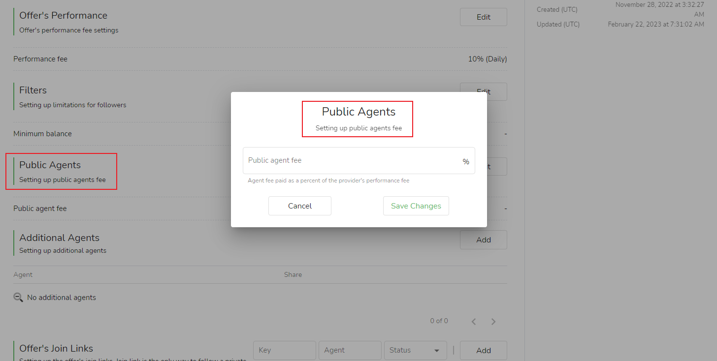 The introduction promotion fee is paid according to the percentage set by the signal source on the basis of the performance fee.