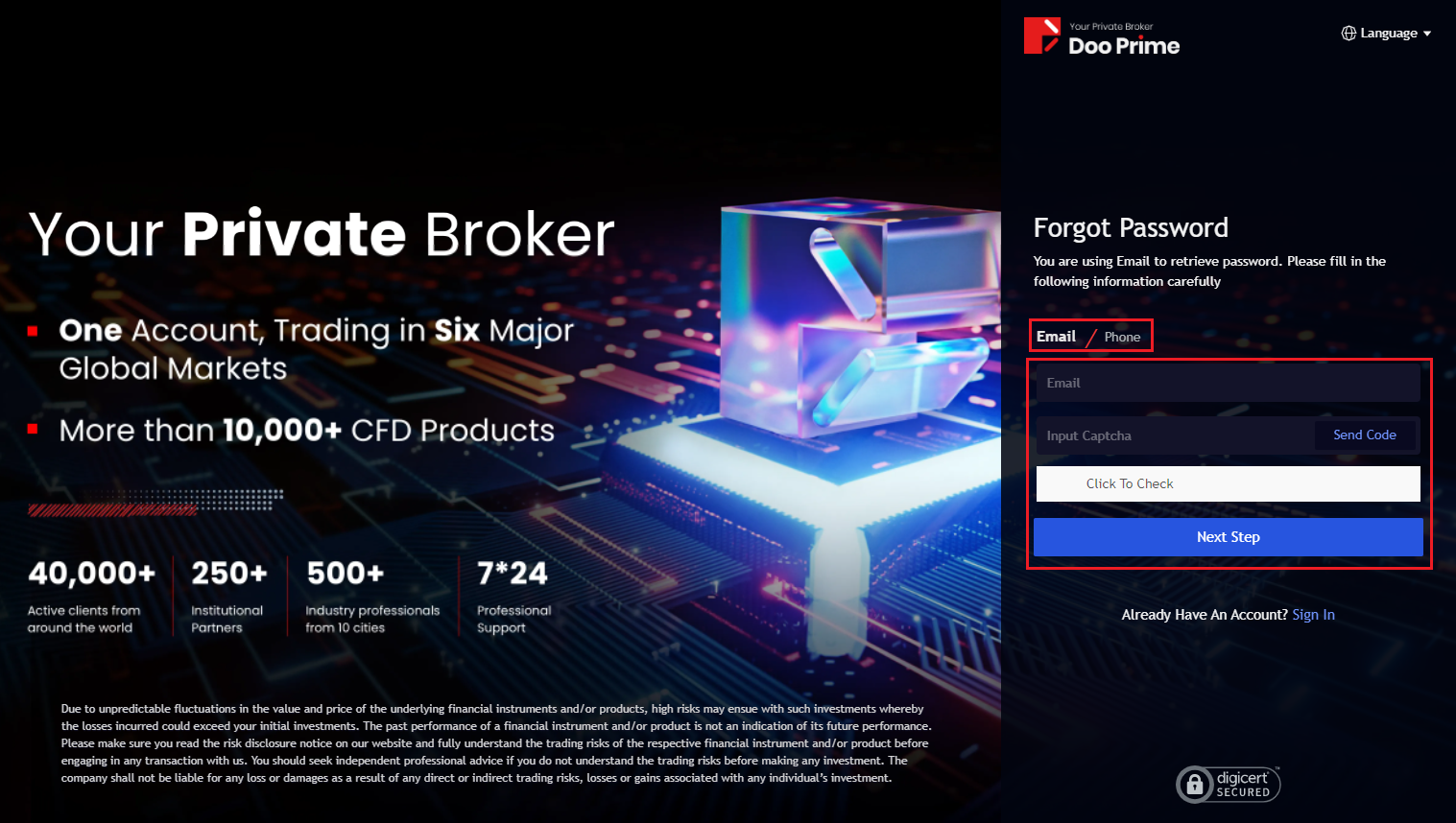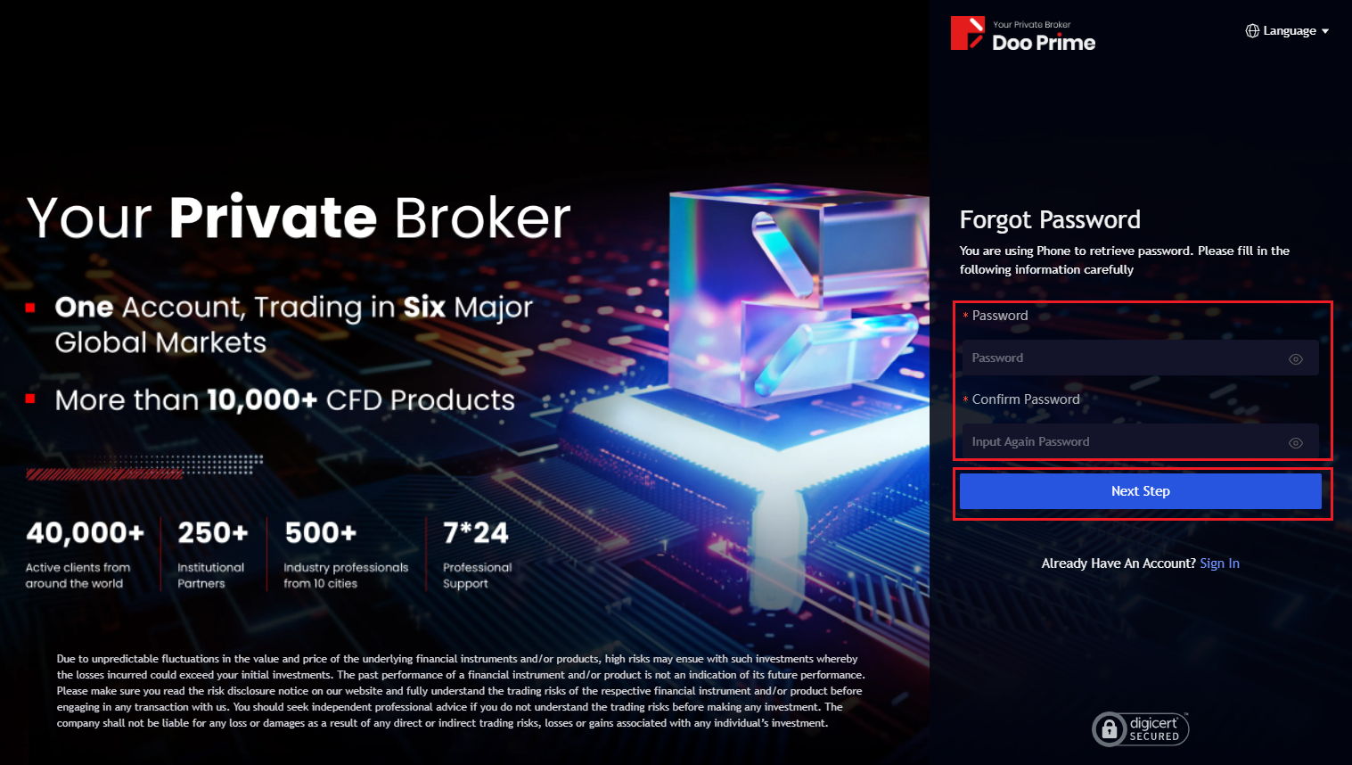 3. 페이지가 "비밀번호를 잊으셨나요?" 인터페이스로 이동합니다. D Prime 사용자 센터 계정 비밀번호를 재설정하고 "다음"을 클릭하세요.