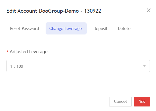 No canto superior direito da conta, clique na engrenagem, selecione uma nova alavancagem e clique em OK.