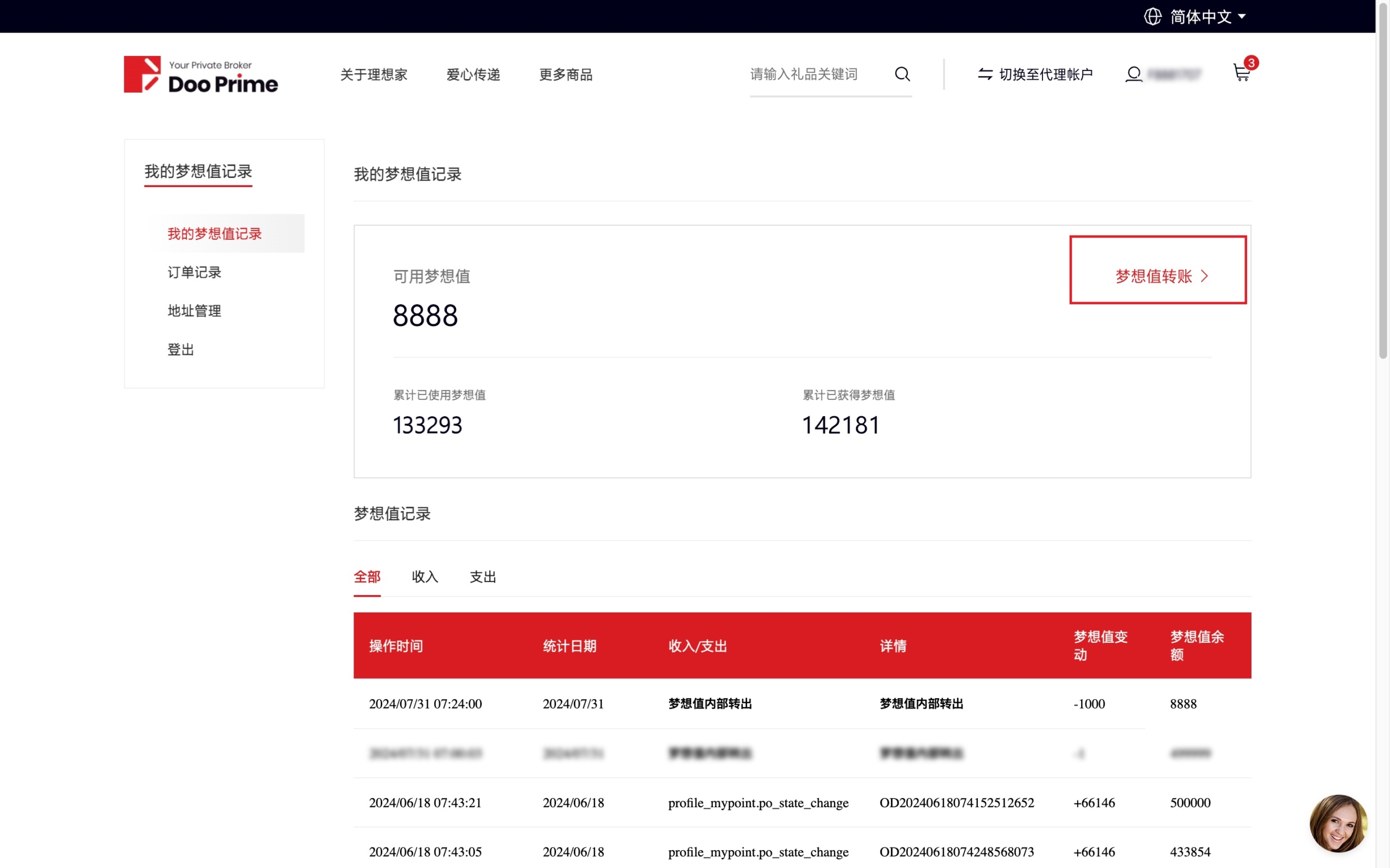 Seus Dream Points podem ser transferidos entre clientes individuais com o mesmo nome ou contas de agentes com o mesmo nome e usados para resgatar presentes ou serviços prestados no shopping, mas não podem ser transferidos, descontados ou negociados com outros clientes.
