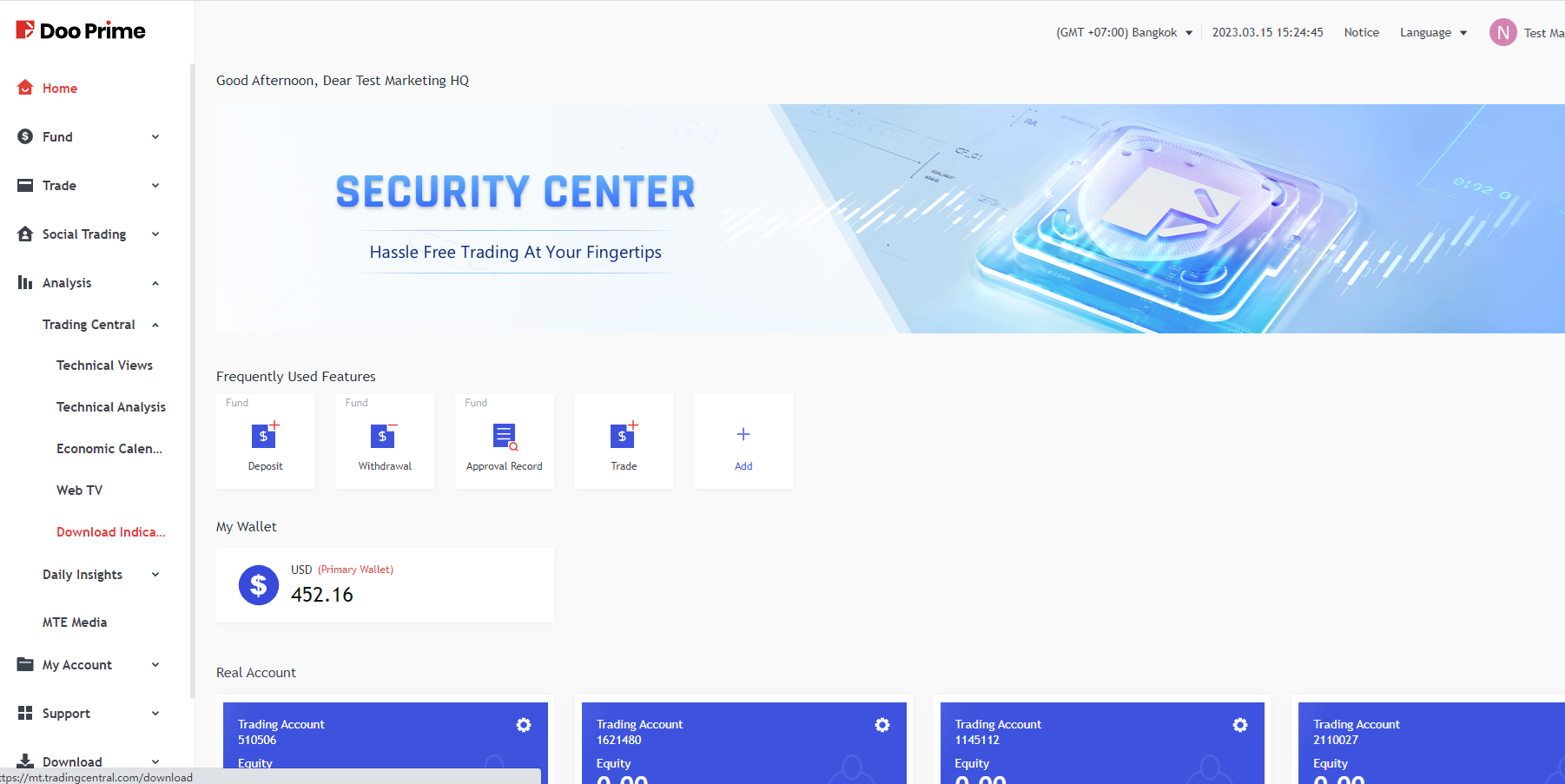 1. Primeiro, faça login no Doo Prime User Center, depois clique em "Analysis" na barra de menu à esquerda e selecione "Download Indicators". Por favor, verifique a barra de menu inferior neste ponto, o indicador Trading Central foi baixado.
