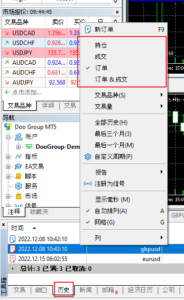 在MT5工具箱中,点击【历史】,右键选中任意一笔交易,可以设置查看不同显示方式的历史记录,具体可以分为四种方式:
