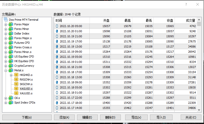 2. 在左侧菜单栏中选择具体交易品种后便可查看历史数据。