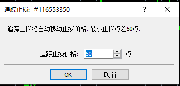 移动止损又叫追踪止损,是通过追踪市价来设置一定止损点数的止损方式,只要当持有头寸产生的浮动盈利达到设定值时,就会触发追踪止损,以此来保护持有头寸的盈利。