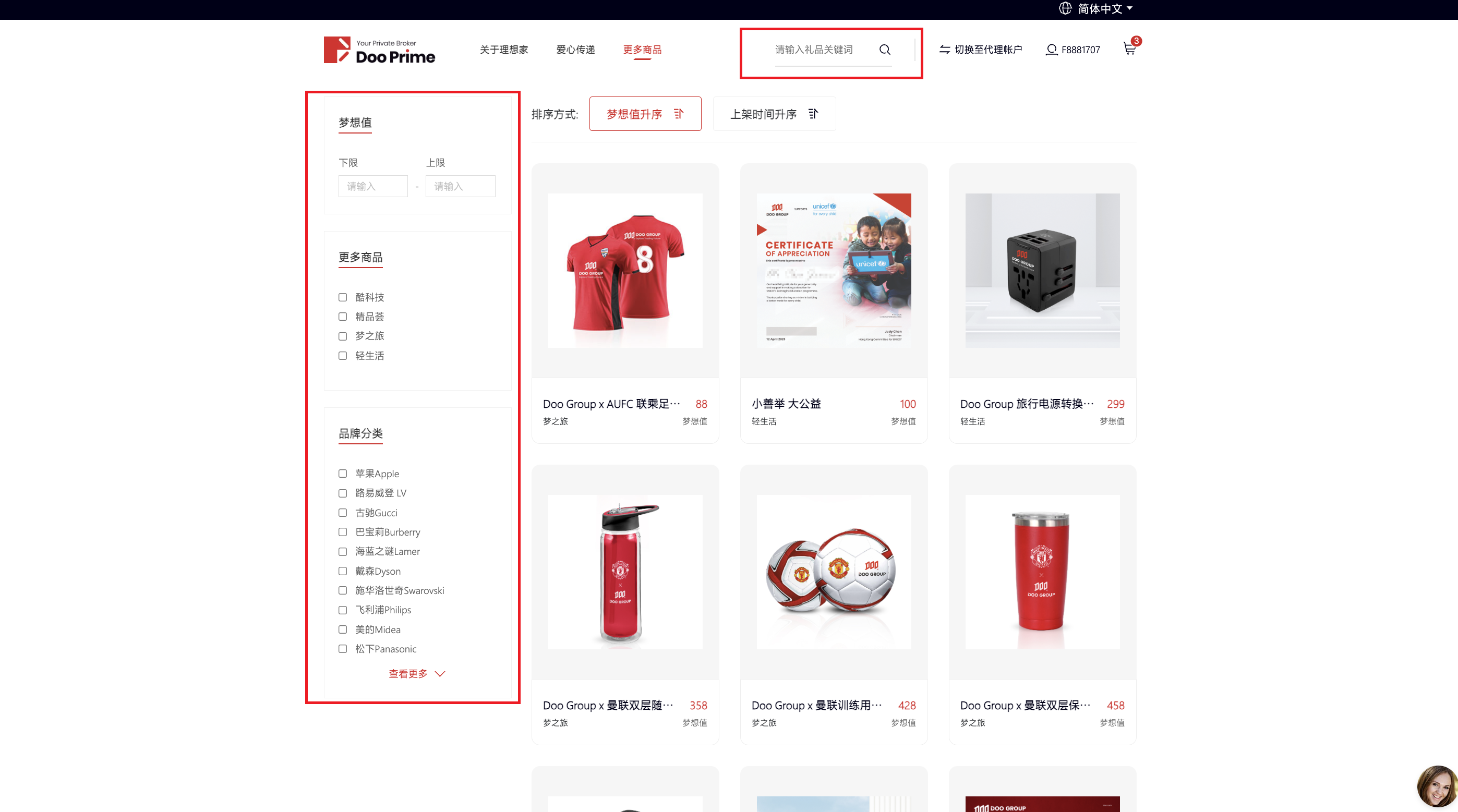 - Đăng nhập vào trung tâm tích điểm Doo Prime "Ngôi nhà lý tưởng" và tìm kiếm những món quà bạn muốn theo tên/giá trị mơ ước/danh mục/thương hiệu