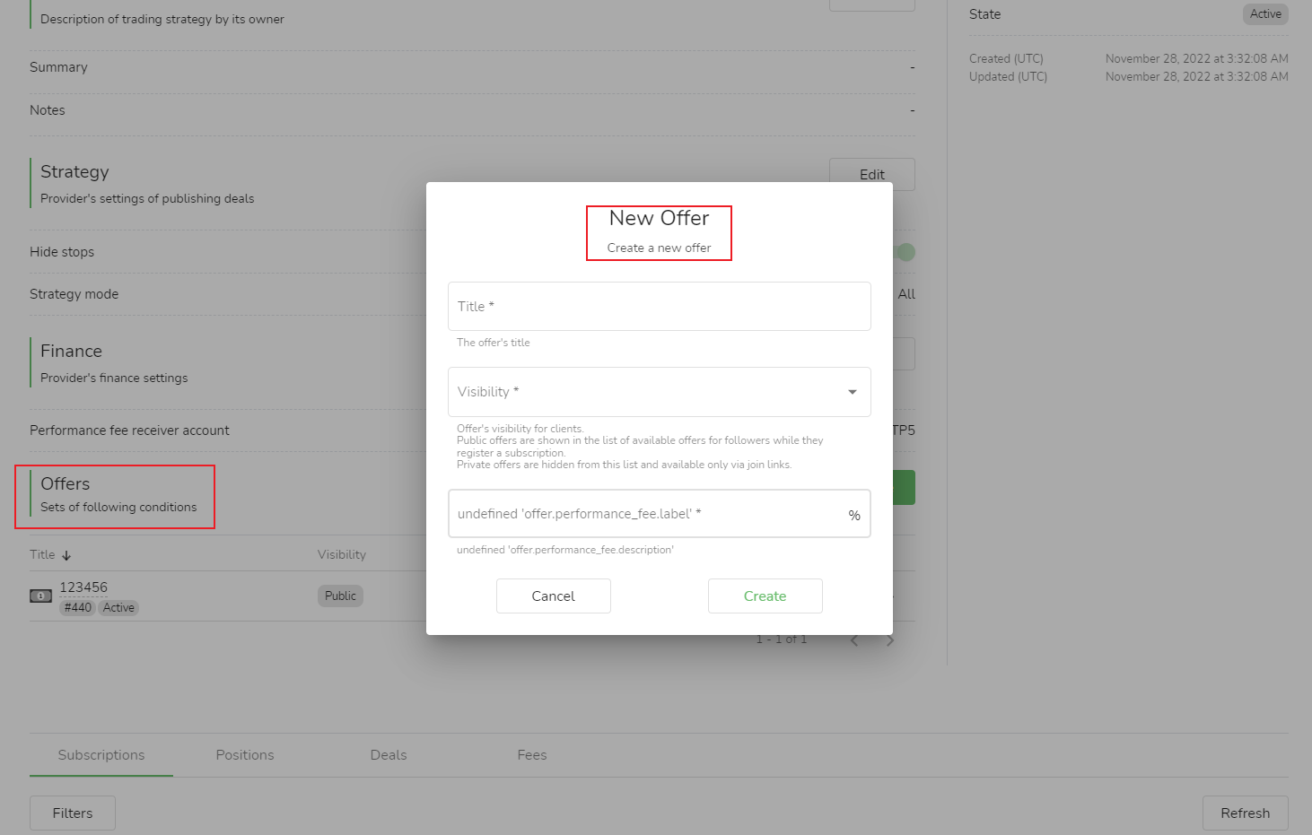 Sau khi hoàn thành việc tạo nguồn tín hiệu mới, bạn có thể đặt [Tiêu đề], [Chiến lược], [Tài khoản nhận phí hiệu suất] và tạo [Điều kiện sao chép].